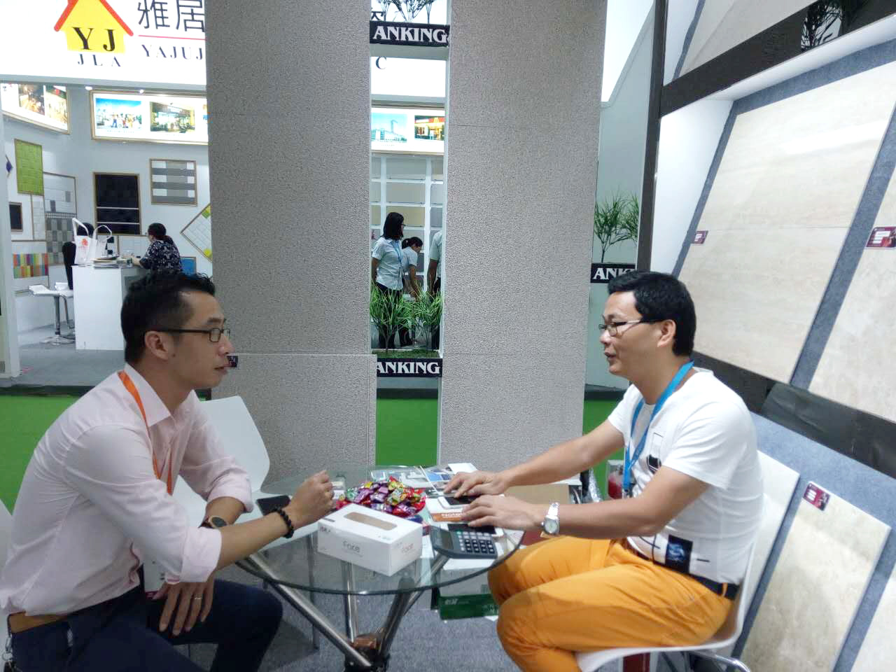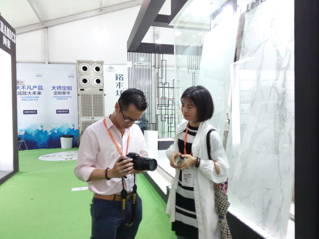 今日是陶博會(huì)第四天,天氣預(yù)告說(shuō)臺(tái)風(fēng)暴雨將至,全市小學(xué)幼兒園都停課了。上午和楊勁文社長(zhǎng)一起去逛中國(guó)陶瓷城展館,看到人氣不錯(cuò)真是出乎意料。跟著技術(shù)控去看產(chǎn)品就是大不同,許多技術(shù)工藝的訣竅和市場(chǎng)行情都弄懂了。騰達(dá)的余總,加西亞的謝潔美,燊科的梁智玲,居壁的肖斌……很多都是楊社長(zhǎng)的老同事老朋友,他們提供的行業(yè)資訊當(dāng)然都是很真實(shí)很可靠滴。