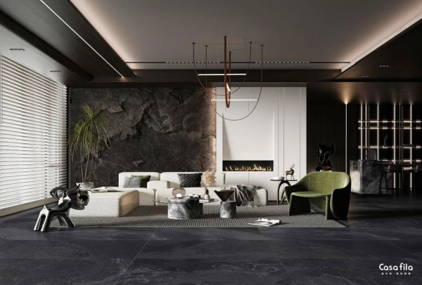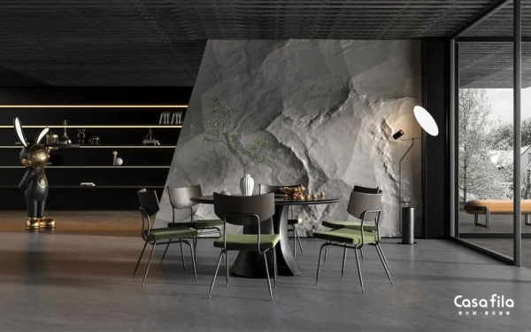 細膩的紋理變化,似奔涌而至的煙霞霧氣,帶著一種深邃如詩的質(zhì)樸美,在空間中自由延展,觸手可及的質(zhì)感,保留原始的天然氛圍,于繁復(fù)中還原生活的純粹。