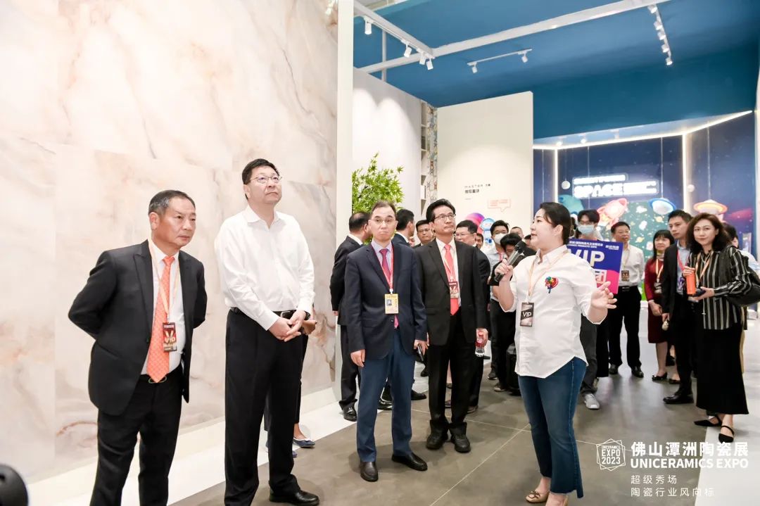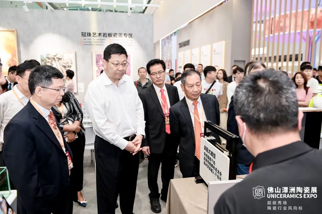 上午9時,2023佛山潭洲陶瓷展在潭洲國際會展中心1號館舉行了開幕式。佛山市長白濤親臨展會現(xiàn)場,參觀了冠珠、宏宇、薩米特、馬可波羅、蒙娜麗莎、諾貝爾、順輝、大將軍、鷹牌生活、越南VCG等展館,對參展企業(yè)產(chǎn)品、設(shè)計及空間應(yīng)用展示做出了高度評價。